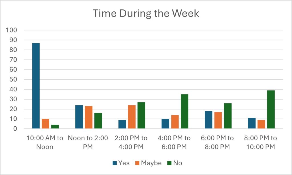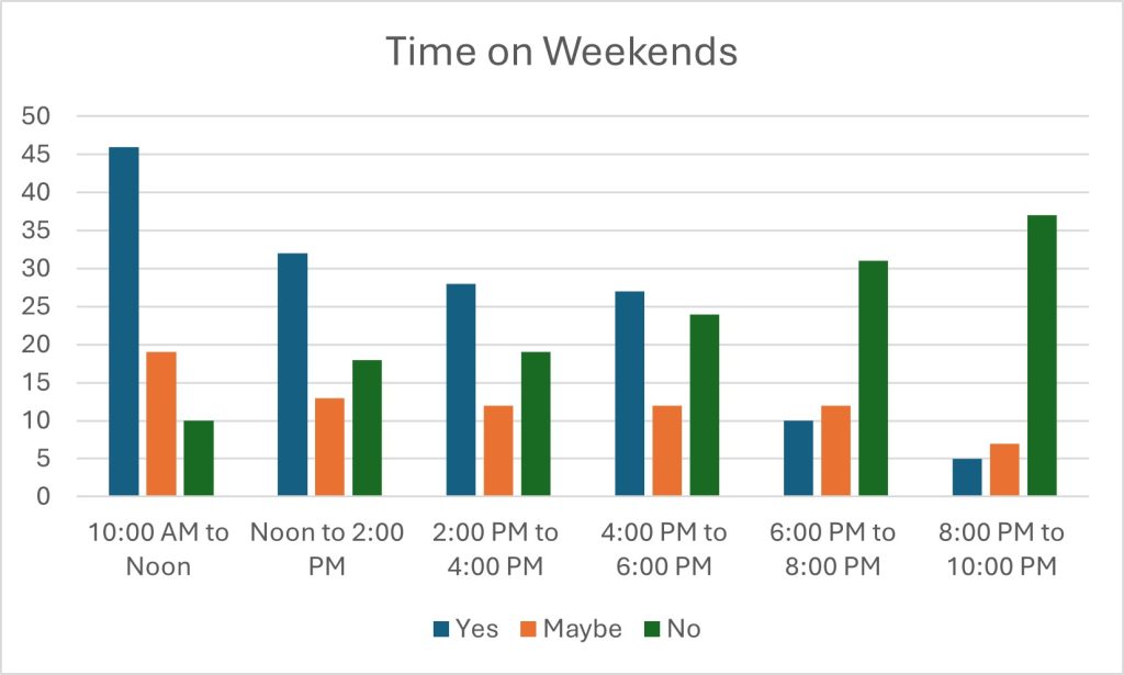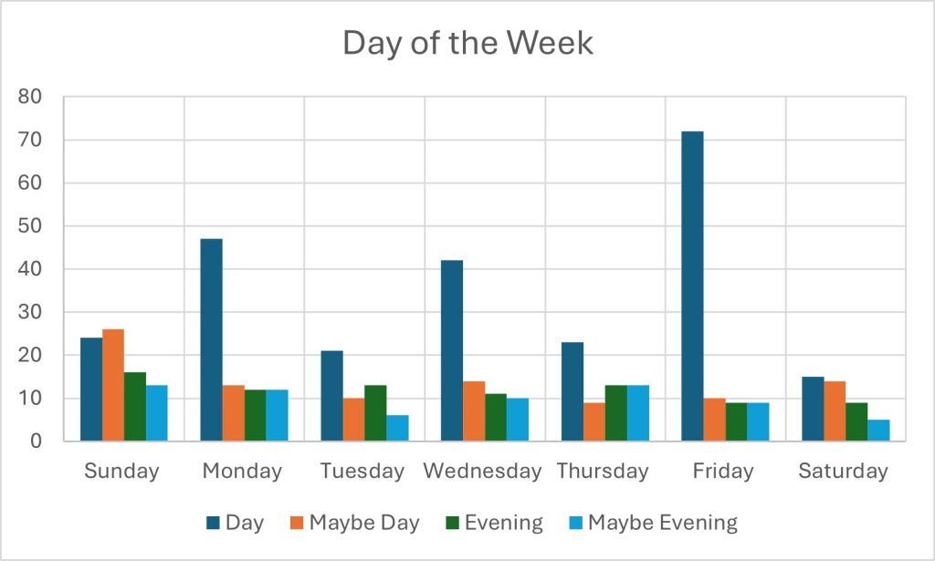 Friday was the preferred day to play, followed by Monday, Sunday and then Wednesday.