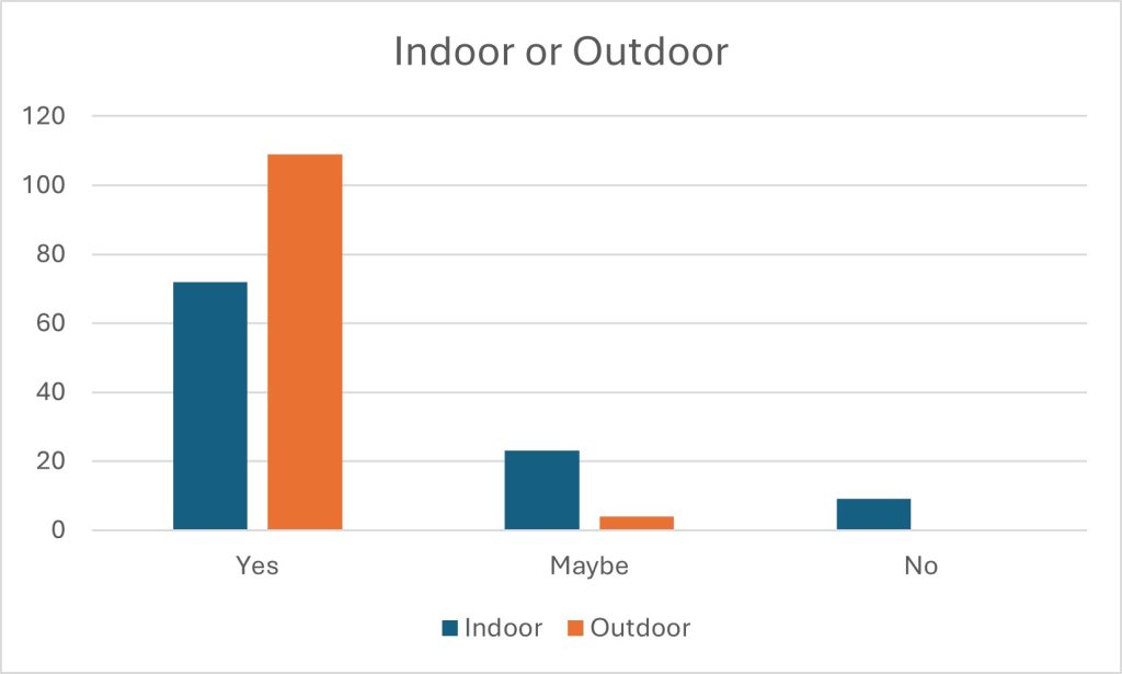 Playing outdoors was preferred, though a significant number were interested in indoor.