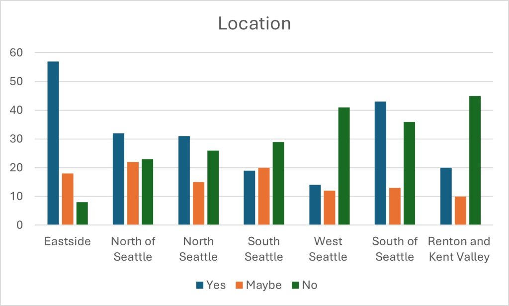 Eastside and Burien/Federal Way were the preferred locations, followed by North Seattle.